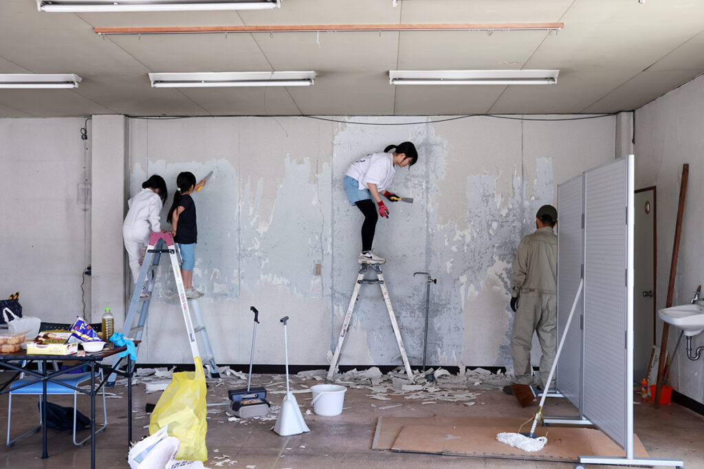 松川町役場からの声掛けで、2024年からあらい商店街で活動していた南さんを中心とする町の有志グループ「あらいにぎわいクリエイト部」の活動拠点として、キッチンつきの明るい空間にリノベーション。