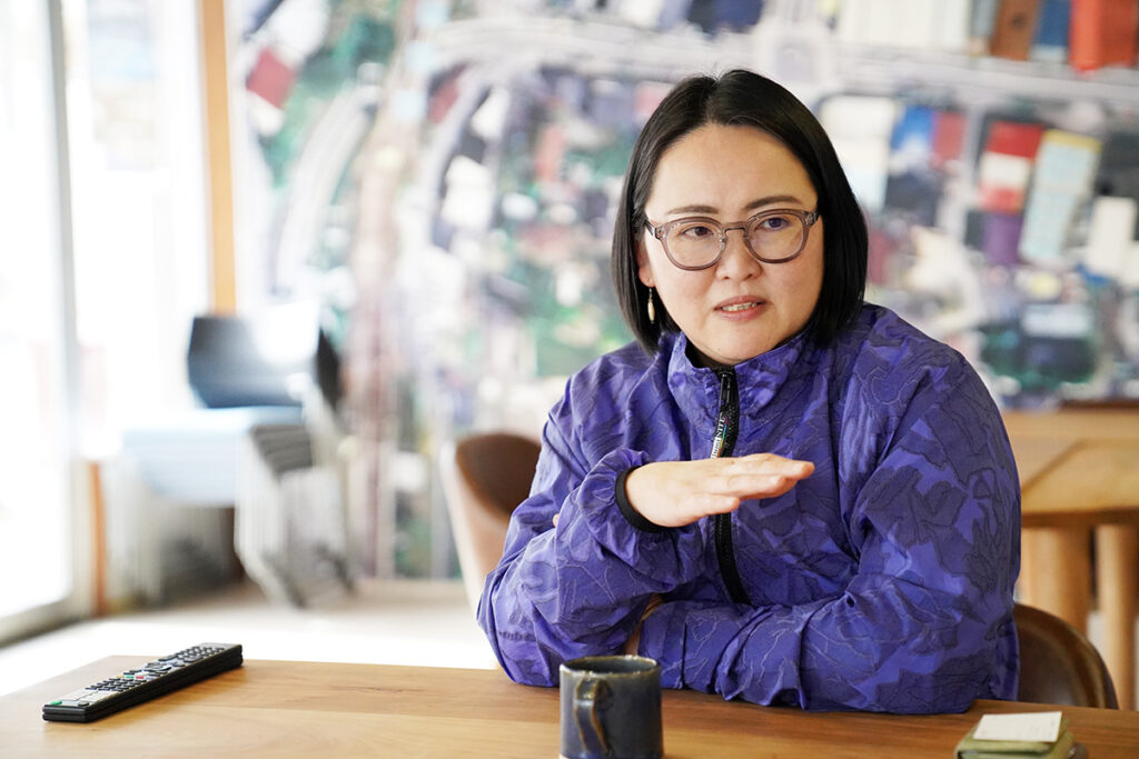 俳優で演劇を通じて地域の豊かさを伝える「南信州アートラボ」を主宰する野口千英子さんは、松川町のまちづくり政策課・まちづくり推進係の集落支援員でもあり、普段は「カイコ」に常駐。そしてなにより、南さんのよき理解者で協力者。
